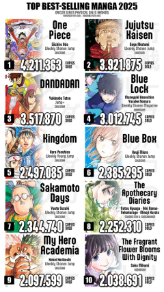 韓国ネットの反応 韓国オンラインコミュニティでは、2025年の日本における漫画とライトノベルの年間販売データが共有され、注目を集めている。投稿には、オリコンの統計をもとにまとめられたランキング画像が掲載されており、ジャンルごとの売上動向が一目で分かる内容になっていた。ライトノベル部門では、『薬屋のひとりごと』シリーズがトップとなり、100万部を超える販売数を記録。続いて『ようこそ実力至上主義の教室へ』や『負けヒロインが多すぎる!』などがランクインしている。一方、漫画部門では『ONE PIECE』『呪術廻戦』『ダンダダン』など、週刊誌連載作品が上位を占める結果となった。コミュニティでは、“どの作品がどの程度売れているのか”を数字で確認できる点が興味を引き、作品ごとの特徴やジャンル分布の違いに視線が集まっていた。投稿者はシンプルに「『薬屋のひとりごと』の売れ行きが印象的だった」と短い感想を添えている。この記事へのコメントはこちらからお願いします。…