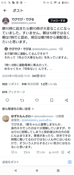 【悲報】VTuber、朝7時に通勤は大事なものを失ってるとポストして炎上