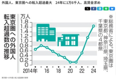 1: 名無し 2025/11/29(土) 20:20:49.90 ID:BOvQZZL79 外国人、東京圏への転入超過最大 24年に1万6千人、高賃金求め…