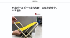 1 : 岐阜県は29日、岐阜メモリアルセンター長良川競技場(岐阜市)で同日開催されたサッカーJ3岐阜対FC大阪の試合中、ボールボーイを務めた愛知県の少年(14)が使っていた折りたたみ式パイプいすが壊れ、少年の右手薬指が挟まれ、指先を切断したと発表した。救急搬送され、命に別条はないという。 岐阜県スポーツ協会などによると、試合は午後3時過ぎにキックオフ。同45分ごろ、少年が岐阜側のベンチ近くに置かれたいすに座り、待機していたところ、いすが突然壊れたという。協会は競技場内にあった同じタイプのいす計66個の使用を中止。他の備品のチェックも実施する。全文はソースで 4 : 気の毒やね 接合されたのかな…