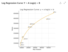引用元: 423: Vtuberまとめ2025/11/30(日) 08:28:09.52 みこ 57,432 5:04 46万再生 ぺこら 47,148 3:55 39万再生 わため 22,588 5:03 34万再生 スバル 19,762 4:50 31万再生 フブキ 13,486 3:48 19万再生 すい 10,739 3:13 21万再生 おかゆ 8,428 3:42 13万再生 あずき 8,214 3:54 15万再生 435: Vtuberまとめ2025/11/30(日) 08:29:08.50 >>423 なんか同接もだけどホロライブの二極化まじで進んでるな 450: Vtuberまとめ2025/11/30(日) 08:29:56.32 >>423 あれ?ぺこら途中で逃げたの? 468: Vtuberまとめ2025/11/30(日) 08:30:53.58 >>423 やっぱりおかしいよな 667: Vtuberまとめ2025/11/30(日) 08:40:34.60 >>423 横軸:最大視聴者数 縦軸:再生数 でLogで回帰曲線をGPTに描いてもらった ペコラだけ再生数すくないかもね、まあ、でも極端に少ないわけでもなから もっと他の配信でもこの傾向があるかどうかかな 726: Vtuberまとめ2025/11/30(日) 08:44:11.59 >>667 配信時間入れてない時点で論外 771: Vtuberまとめ2025/11/30(日) 08:46:46.39 >>667 なんでalog(x)+bなん? 833: Vtuberまとめ2025/11/30(日) 08:49:57.47 >>771 大体は直線的な変化なもんだよ その中で他とあってるものをえらんで、違和感を探せば良い(この場合は対数スケールに対して直線的) 931: Vtuberまとめ2025/11/30(日) 08:54:06.84 >>726 配信時間は元データにあるじゃん、それに配信時間と再生数に相関があるから このグラフでも傾向はわかるでしょ 950: Vtuberまとめ2025/11/30(日) 08:54:56.67 >>771 直線より回帰がいいから、MAX視聴数が多いと再生数が下がる傾向はもともとあるから…