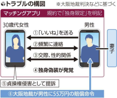1. 匿名@ガールズちゃんねる 2人が利用していたアプリは、規約で未婚者だけが登録可能と定められていた。 10月21日の判決で、寺田幸平裁判官は、交際相手を探す人にとって相手の婚姻の有無は「性的関係を伴う交際をするかどうかを判断する重要な情報」と言及。2人が交際関係にあったことを認め、「(男性の独身偽装は)女性にそうした判断の機会を失わせる行為だ」とし、貞操権の侵害を認定した。一方、結婚が前提の関係ではなかったことなども踏まえ、男性の賠償額を55万円とした。 訴訟では、女性が一連のトラブルをSNSの有名配信者を通じて公表したことについても審理された。不貞関係の暴露で社会的評価が低下し、名誉が傷つけられたとして男性が女性に慰謝料など約450万円を求めて反訴したためで、判決は女性にも34万円の賠償を命じた。 2025/12/01(月) 09:18:12…