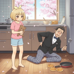 【悲報】母の日に執事セバスチャンになろうとした旦那、パンケーキ焼き中にぎっくり腰でダウンwww