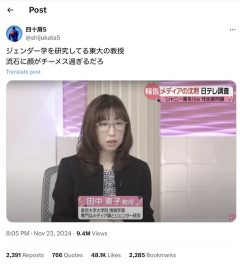 X民「ジェンダー研究してるオバハン顔ぶっさw」