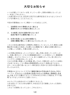 引用元: 1531: Vtuberまとめ (ワッチョイW 01e5-meOR) 2025/12/02(火) 17:41:19.11 ID:mWpz5QyA 天音かなた💫ホロライブ @amanekanatach (2025/12/02 17:41:13) 卒業についてのお知らせ 天音かなた6周年となる2025年12月27日をもちまして、 ホロライブを卒業します。 ぜひ読んでいただけたら嬉しいです。 卒業についてのお知らせ 天音かなた6周年となる2025年12月27日をもちまして、ホロライブを卒業します。ぜひ読んでいただけたら嬉しいです。 pic.twitter.com/lvST9dWCrR — 天音かなた💫ホロライブ (@amanekanatach) December 2, 2025 1573: Vtuberまとめ (ワッチョイW 7f31-Pys7) 2025/12/02(火) 17:41:37.93 ID:awIPBBBa >>1531 たそ~😭 1604: Vtuberまとめ (ワッチョイ 0665-Wzr9) 2025/12/02(火) 17:41:53.67 ID:otEST8xn >>1531 たそ・・・ 1655: Vtuberまとめ (ワッチョイ 6e73-xogO) 2025/12/02(火) 17:42:30.71 ID:ziLZafWU >>1531 今までおつかれさまなのらね 1695: Vtuberまとめ (ワッチョイW 2965-KEbX) 2025/12/02(火) 17:42:53.52 ID:CdYmCAve >>1531 卒業の文面に「転生」を入れた人はどれくらいいるのか 1854: Vtuberまとめ (ワッチョイW c7e5-YlbS) 2025/12/02(火) 17:44:23.93 ID:sGg251Z6 >>1531 カバーはこれでも改善しないんだろうな 1922: Vtuberまとめ (ワッチョイW b68e-4Fdo) 2025/12/02(火) 17:45:11.34 ID:iKXsUu6h >>1531 メンバー間ガイガイは流石に書いてないな 1983: Vtuberまとめ (ワッチョイW 555b-yIUt) 2025/12/02(火) 17:45:50.88 ID:TmzxfqQB >>1531 タレント部分アドリブで草 2093: Vtuberまとめ (ワッチョイW 1577-V5YE) 2025/12/02(火) 17:46:52.21 ID:L3nPGuSs >>1531 普通にカバーの責任でかいよねこれ 2125: Vtuberまとめ (ワッチョイW 7678-tQcJ) 2025/12/02(火) 17:47:15.40 ID:9ssZYX0W >>1983 運営に言ってなかった内容かもな 2253: Vtuberまとめ (ワッチョイW b2b6-yIVd) 2025/12/02(火) 17:48:36.09 ID:O4QNtmWv >>1983 ホロメンに許可取ったんだろ流石に…