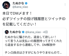 【悲報】たぬかな「本日で返金対応のDM閉じます! 」