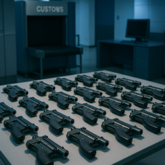 【衝撃】中国人の男、日本へ“拳銃24丁”密輸の疑いで逮捕…複数回にわたり航空貨物に隠す