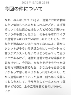引用元: 764: Vtuberまとめ2025/12/04(木) 07:19:28.52 ホロリスの意見きたぞ! よっちゃん🌽👑@すこん部 @Yochan_Sukonbu (2025/12/02 23:01:49) 【ホロリス界が荒れていることに対して物申したいこと】 あくまでこれは私の考えではありますができるだけ多くの人に伝わるのを願っています。 私自身もこれを動揺の中書いたので言葉足らずなところやおかしいところもあると思いますがご了承ください 813: Vtuberまとめ2025/12/04(木) 07:21:10.41 >>764 頼む、コイツがガキであってくれ 大人だったら頭抱えるレベルで社会経験ないやん 814: Vtuberまとめ2025/12/04(木) 07:21:10.40 >>764 感動したわ 817: Vtuberまとめ2025/12/04(木) 07:21:25.57 >>764 見守り!応援!なんちゃら! 824: Vtuberまとめ2025/12/04(木) 07:21:50.77 >>813 中3って書いてあった 843: Vtuberまとめ2025/12/04(木) 07:22:55.12 >>824 ありがと、よかったわ 844: Vtuberまとめ2025/12/04(木) 07:22:55.97 >>824 っぽい文章だな たまに大学生とかでこの文章書く奴いるからビビる 871: Vtuberまとめ2025/12/04(木) 07:24:28.86 >>764 底なしのアホだな 971: Vtuberまとめ2025/12/04(木) 07:30:13.20 >>764 谷郷より実際に権力持って動かして谷郷には都合のいい報告しかしない人間が矢面立たず裏で隠れてるってならそうなんだけどな…
