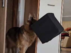 【ネコになりたい】 うちのイヌが箱を咥えてやってきた。諦めないぞぉ! → 犬、がんばります…