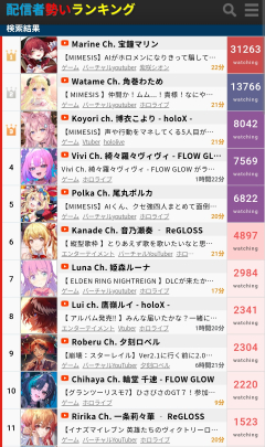 引用元: 53: Vtuberまとめ (ワッチョイW c78f-94b1) 2025/12/04(木) 19:24:04.67 ID:mY960E7p 最近のりりーかってどうしたん? 声優バフあってこれはどしたんよまじで リグロスは全員自分の道進んでるのに配信のりりーかだけ大丈夫か 80: Vtuberまとめ (ワッチョイ 76f9-LYX1) 2025/12/04(木) 19:24:50.11 ID:lDNdBJKZ >>53 秘書見習いはどこに吸われてるんだろうな 95: Vtuberまとめ (ワッチョイW 109d-0uIK) 2025/12/04(木) 19:25:15.13 ID:DZ7LQWs3 >>53 ジジィだらけのホロリスにイナイレなんて刺さるわけないだろ 118: Vtuberまとめ (ワッチョイW e0a0-jRdg) 2025/12/04(木) 19:25:56.98 ID:wU9dFRsi >>80 りおーなに吸われてそう 122: Vtuberまとめ (ワッチョイW c78f-94b1) 2025/12/04(木) 19:26:03.97 ID:mY960E7p >>80 デバイス内で配信はフログロに移ってる気がする りおーなとか多そう 137: Vtuberまとめ (ワッチョイ 0665-pXVM) 2025/12/04(木) 19:26:29.82 ID:0BC4gBXf >>53 もう完全に角を折られてしまった🐴 138: Vtuberまとめ (ワッチョイW b28f-03Jx) 2025/12/04(木) 19:26:30.59 ID:MeDS0ndP >>53 全体的に低いしたそショック広がってる? 141: Vtuberまとめ (ワッチョイ 065f-LYX1) 2025/12/04(木) 19:26:32.46 ID:M2Bzww3O >>53 もうちょい経てば2000は行くだろ それでいいかは別として 165: Vtuberまとめ (ワッチョイW 2965-KEbX) 2025/12/04(木) 19:27:13.07 ID:QgyyL5SG >>53 わためぇ強いな 237: Vtuberまとめ (ワッチョイ c786-kI6Y) 2025/12/04(木) 19:29:49.37 ID:kIPppWKg >>53 りり雑は聞いてるけどゲームは興味ないわ 241: Vtuberまとめ (ワッチョイW 769d-S3gC) 2025/12/04(木) 19:29:58.79 ID:OMxfp7dA >>53 つーか全体的に低いな 250: Vtuberまとめ (ワッチョイW 81bc-SvBI) 2025/12/04(木) 19:30:41.93 ID:JHdaV0eF >>53 イナイレ興味ないんだすまん 雑談は観るから許してね 538: Vtuberまとめ (ワッチョイW 76f9-bjVQ) 2025/12/04(木) 19:39:46.09 ID:zuHFGciH >>53 もう偽りりーかについていけないな…