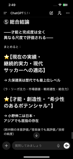 【悲報】「久保建英と小野伸二はどっちが才能があるか教えて」🤖「ワカリマシタ」