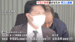 改造車などの車検を不正に通し、見返りとして、現金を受け取ったとして自動車検査員の男らが検挙されました。 警視庁によりますと民間車検場「ブルック」の元社員で自動車検査員の寺垣訓弘容疑者ら3人はことし、改造車など4台の車検を不正に通し、見返りとして、現金8万8000円を受け取った疑いが持たれています。 また「ブルック」に不正車検を依頼し、現金を渡したとして、浴本昌希容疑者も検挙されました。 寺垣容疑者らは、浴本容疑者が持ち込んだ「ランボルギーニ」や違法改造された「ベンツ」の車検を不正に通したとみられています。…