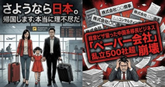 1: 名無し 2025/12/05(金) 14:35:12.88 ID:XiNoGa4u0 外国人経営者向けの在留資格「経営・管理ビザ」の取得要件が10月に厳しくなり、すでに日本に移住している中国人の間で動揺が広がっている。 厳格化されるのは、移住目的で実体のないペーパー会社を設立する事例が目立つことが指摘されていたからだ。 大阪市内の五つの築古物件には、コロナ禍後の3年間でペーパー会社と疑われる中国系法人計677社が登記していることが判明した。 参加した陳偉さんは、ビザの取得要件厳格化で1人以上の常勤職員の雇用が必須とされたことを「理不尽だ」と感じている。 読売新聞 ■要約 ・「経営・管理ビザ」の要件厳格化(常勤雇用必須など)により、在日中国人が反発。 ・背景には、大阪の5物件だけで677社が登記されるなど、ペーパーカンパニーによる悪用が横行していた実態がある。 ・中国人側は「理不尽だ」「さようなら日本」と声を上げているが、制度の適正化が進められている。 ■解説 「さようなら日本」と言うなら、どうぞお引き取りくださいというのが日本国民の本音だろう。 たった5つのボロアパートに600社以上も登記されている時点で、まともな企業活動が行われていないのは明白だ。 これを「起業」と強弁し、日本の社会保障や在留資格にタダ乗りしようとする行為こそが、真面目に納税している日本人への裏切りであり「理不尽」そのものである。 「ビル・ゲイツもガレージから~」などと美談めいたことを言っているが、ゲイツは外国のビザ目当てにペーパーカンパニーを作ったわけではない。 実態のない「偽装移民」を排除し、ルールを厳格化するのは主権国家として当たり前の自浄作用だ。 高市政権下でこうした「穴」が次々と塞がれていることは大いに評価できる。 「マイナ保険証はトラブルが多すぎる」“紙の保険証”復活求め200万筆以上の署名提出「発行再開こそ唯一の解決策」wwwwwwwwwwwwwwwww... 【速報】 中国政府「浜崎あゆみの無観客公演は流石にやり過ぎた。政府に批判が向かわないように操作しろ!」⇒ 結果wwwwwwwww 【浜崎あゆみ】 インスタに中国人ファンが大集結 「中国人として恥ずかしい」「中国政府は人民を代表しない」「政府は横暴だ」コメント殺到…