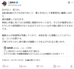 【悲報】読者「このマンガ休載多すぎ!」作者「3人の子育てしながら連載してるんだが・・・?」