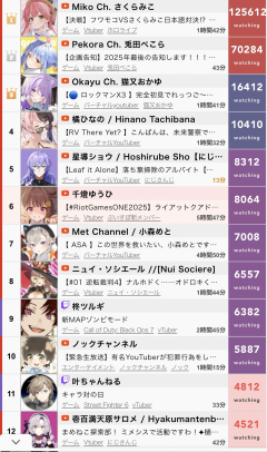 引用元: 106: Vtuberまとめ2025/12/06(土) 21:48:23.76 なんだこの同接 ホロライブもう許してくれ 俺たちが悪かった 122: Vtuberまとめ2025/12/06(土) 21:48:39.63 >>106 ホロライブすげえええええええええええええ 125: Vtuberまとめ2025/12/06(土) 21:48:41.11 >>106 うおおおおお 135: Vtuberまとめ2025/12/06(土) 21:48:50.49 >>106 こっから10万増えるから見とけよ 138: Vtuberまとめ2025/12/06(土) 21:48:52.83 >>106 ホロライブ最強! 150: Vtuberまとめ2025/12/06(土) 21:49:02.34 >>106 うおおおおおお 180: Vtuberまとめ2025/12/06(土) 21:49:23.00 >>106 ギャハハハハハハ 181: Vtuberまとめ2025/12/06(土) 21:49:23.76 >>106 さすがに7万は盛りすぎたな そんなにいないだろ 184: Vtuberまとめ2025/12/06(土) 21:49:25.32 >>106 すっげえ 259: Vtuberまとめ2025/12/06(土) 21:50:12.95 >>106 botライブは無視するとしてぶいすぽ強くなったなと思う 278: Vtuberまとめ2025/12/06(土) 21:50:23.53 >>106 サロメなんでこんな低いの? 295: Vtuberまとめ2025/12/06(土) 21:50:37.62 >>106 で、株価は? 同接だけ上がっても意味無くね? 316: Vtuberまとめ2025/12/06(土) 21:50:52.34 >>278 妥当だと思うけど 398: Vtuberまとめ2025/12/06(土) 21:51:58.80 >>316 そうなんだ… 461: Vtuberまとめ2025/12/06(土) 21:52:36.62 >>398 いや冗談抜きで今こんなもんよ 479: Vtuberまとめ2025/12/06(土) 21:52:49.06 >>106 YAGOOはいつ気が付くのかな? 大事なのは同接よりも株価だということを 538: Vtuberまとめ2025/12/06(土) 21:53:28.90 >>479 ( ・᷄ᯅ・᷅ )お前は株主か 612: Vtuberまとめ2025/12/06(土) 21:54:07.85 >>106 サロメってにじさんじの宝鐘マリンポジじゃなかったっけ? 651: Vtuberまとめ2025/12/06(土) 21:54:32.76 >>106 ホロライブ最強 675: Vtuberまとめ2025/12/06(土) 21:54:43.56 >>612 上場の見栄えのために用意された悲しき存在だよ 715: Vtuberまとめ2025/12/06(土) 21:54:59.95 >>106 ナマステ最強!…