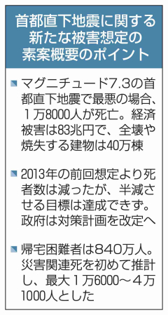 首都直下、死者1万8千人想定 地震の経済被害83兆円