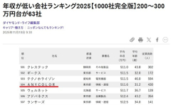 【ソースあり】にじさんじの会社ANYCOLOR、年収500万強なのに年収が低い会社ランキングにランクインする【#エニマガ 記事公開📰】#にじさんじ の魅力をもっと感じることができるWebマガジン「ANYCOLOR MAGAZINE」にて、最新記事が公開されました!みたらし団マネージャーチームインタビュー スタッフが驚く「絶妙な関係性」が育まれたワケ記事はこちら▼みたらし団 pic.twitter.com/08UMUYbEme— にじさんじ公式🌈🕒 (@nijisanji_app) November 19, 2025 -Vtuberタグ-にじさんじ RSSにじさんじ (ROF-MAO) (ChroNoiR) 葛葉 ルンルン 星川サラ 月ノ美兎 今日のNEW(0゚・∀・)+ ワクテカ +1: 名無しの時事ネタ 2025/11/11(火) 21:31:51.862 ID:Y77aaA5N01111 511万ってマシな部類だと思ってたけど低い扱いなのか…どんだけ他社はインフレ&賃上げしてんだ おまけ 底辺外人ライバーは儲かってないらしい…