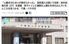 1 : 建造物侵入の疑いで現行犯逮捕されたのは、自称・名古屋市の会社役員、足立亮太朗容疑者(37)で、きょう正午ごろ、千葉県八千代市にある県立高校に侵入した疑いがもたれています。 警察によりますと、当時校内にいた教員が男子トイレの個室にいた足立容疑者を発見し、110番通報したということです。 教員が発見した際、足立容疑者は、生徒のものとみられる複数の上履きを個室の中に持ち込んでいました。 取り調べに対し、「女性のにおいフェチで、上履きのにおいが嗅ぎたかった」と容疑を認めているということです。 また、足立容疑者は、「愛知県の学校はスリッパを上履きとして使っていて、関東の学校は靴形のものを使っているため愛知から来た」という趣旨の供述もしているということです。 4 : 毎日毎日変態ニュースが後を絶たないな…