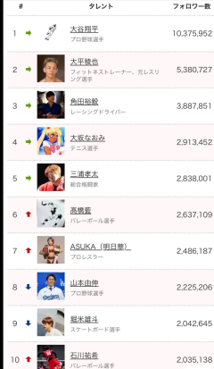 日本人スポーツ選手のインスタフォロワー数ランキング、すごいwwwwwwww
