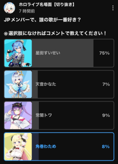 引用元: 282: Vtuberまとめ2025/12/07(日) 13:29:47.51 301: Vtuberまとめ2025/12/07(日) 13:30:33.77 >>282 なんで星街なんだよルーナ出して公平にしろよ 318: Vtuberまとめ2025/12/07(日) 13:31:04.07 >>282 1番低いの草かなた需要ないな 341: Vtuberまとめ2025/12/07(日) 13:31:42.85 >>301 守ってルーナイトは神 367: Vtuberまとめ2025/12/07(日) 13:32:31.95 >>282 かなたその歌って「ロングトーン」が売りだからな あれは流石に笑った 372: Vtuberまとめ2025/12/07(日) 13:32:41.69 >>341 そいつそれだけの一発屋じゃん 387: Vtuberまとめ2025/12/07(日) 13:33:09.49 >>282 草 392: Vtuberまとめ2025/12/07(日) 13:33:16.37 >>372 しらんがな守ってルーナイトは神!! 393: Vtuberまとめ2025/12/07(日) 13:33:17.21 >>367 正直喉に負担かけてる歌い方だよな全部 396: Vtuberまとめ2025/12/07(日) 13:33:24.02 >>301 派閥幹部が優れてるなッス 407: Vtuberまとめ2025/12/07(日) 13:33:50.00 >>282 星街以外にするやつは感性おかしいよ 419: Vtuberまとめ2025/12/07(日) 13:34:18.14 >>282 わためいと大恥で草 505: Vtuberまとめ2025/12/07(日) 13:37:31.16 >>407 すいちゃんと似たような声、歌い方の歌手多いからなぁ 530: Vtuberまとめ2025/12/07(日) 13:38:21.80 >>505 例えば? 533: Vtuberまとめ2025/12/07(日) 13:38:23.00 >>505 すいちゃんの歌い方パクってる奴○ねばいいのにな…