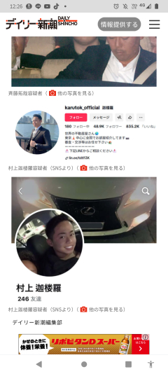 1 : 親が暴走族だろ 闇バイト強盗・指示役の「トクリュウ」4人を逮捕 親族が語る素顔「仕事はわからない」 9つのアカウント使い実行役に指示か(TBS NEWS DIG Powered by JNN) - Yahoo!ニュース 警視庁などの合同捜査本部は、ともに職業・住居不詳の、▼福地紘人容疑者(26)や、▼村上迦楼羅容疑者(27)ら4人を逮捕したと発表しました。 4人は去年10月、「実行役」の別の男3人と共謀し、千葉県市川市の住宅に押し入り住人の女性(当時50)に暴行を加えて大けがをさせ、現金を奪った疑いなどがもたれていて、実行役に犯行を指示していたとみられています 4 : カローラ? 5 : 迦楼羅ってすげー名前やな…