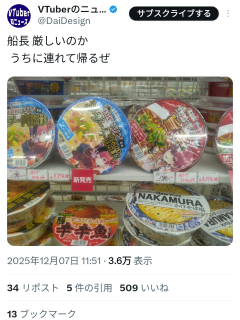 引用元: 39: Vtuberまとめ2025/12/08(月) 07:40:55.24 【悲報】宝鐘マリンさん、値下げ 48: Vtuberまとめ2025/12/08(月) 07:41:26.88 >>39 ろふまおラーメンはどこも売り切れ続出だったらしいのにな 52: Vtuberまとめ2025/12/08(月) 07:41:30.63 >>39 でぃっひゃっひゃwww 61: Vtuberまとめ2025/12/08(月) 07:41:58.28 >>39 マリっこりゃあああああああ 92: Vtuberまとめ2025/12/08(月) 07:43:36.20 >>39 買うわ 98: Vtuberまとめ2025/12/08(月) 07:43:47.68 >>39 俺が行くセブンも1個しかまだ売れてない オマケつけないのは失敗だろ 118: Vtuberまとめ2025/12/08(月) 07:44:28.62 >>39 消せ消せ消せ消せ消せ消せ消せ消せ 120: Vtuberまとめ2025/12/08(月) 07:44:32.30 >>39 こんなの恥ずかしくてレジ持ってけないだろ 128: Vtuberまとめ2025/12/08(月) 07:44:52.56 >>120 マリンはすでに一般化してるけど 133: Vtuberまとめ2025/12/08(月) 07:45:20.72 >>120 53Pの俺は1つ買ったぞ 153: Vtuberまとめ2025/12/08(月) 07:46:03.52 >>39 普通に美味そうだけど買いづらいよ 155: Vtuberまとめ2025/12/08(月) 07:46:07.38 >>39 まだだ……もっと安くなれ…🥴 158: Vtuberまとめ2025/12/08(月) 07:46:10.64 >>39 マリンヌードル逝ったああああああああwww 165: Vtuberまとめ2025/12/08(月) 07:46:18.67 >>39 これ食ったけど味普通だから 不味くも美味くもない 172: Vtuberまとめ2025/12/08(月) 07:46:55.00 >>39 値下げはやくね? 181: Vtuberまとめ2025/12/08(月) 07:47:13.59 >>39 このニュースってやつアンチじゃないはずだけど天然でなんかおかしいよな 185: Vtuberまとめ2025/12/08(月) 07:47:25.94 >>39 高ッッッ!!! スガキヤの分際でボッタクリすぎだろ😰 193: Vtuberまとめ2025/12/08(月) 07:47:42.13 >>39 スガキヤのカップ麺なら辛辛魚にしとけばまだ売れたんちゃう… 196: Vtuberまとめ2025/12/08(月) 07:47:54.61 >>39 叶の飲み物も売れなさ過ぎてドンキに山積み値下げされた画像SNSにあげられてたわ…