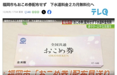 1 : 福岡市も「おこめ券」の配布を見送りました。福岡市は約127億円の補正予算案を12月11日に開会する議会へ追加提出することを明らかにしました。このうち74億円は国の物価高対策、「重点支援地方交付金」で国が推奨する「おこめ券」の配布ではなく、2026年3月までにほぼ全ての一般家庭の下水道料金2カ月分を免除します。 福岡市財政調整課 中村将道課長 「全世帯に速やかで公平な支援が行き届く下水道料金の減免など従前交付金を活用して、実施したことがある事業を補正内容に設定します」 全文はソースで 7 : あーこれはおメコ券よりだいぶイイな 10 : うんこし放題やんけ…