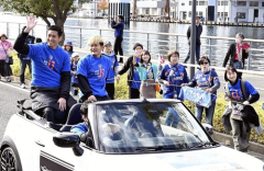 V・ファーレン長崎がJ1昇格を祝うパレード…沿道に集まった約5000人のサポーターに笑顔で手を振る