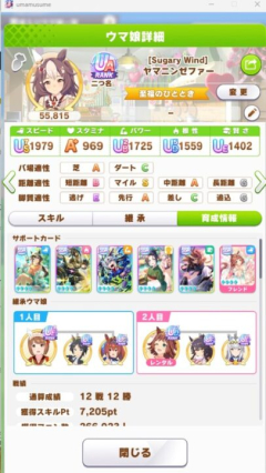 266: 名無しのトレーナー 25/12/07(日) 23:20:42 ID:4l.nq.L123 ところでワイ以外にゼファー育成してる人いるか?スキポどのくらいになる? 274: 名無しのトレーナー 25/12/07(日) 23:22:13 ID:c0.tk.L19 >>266見てくる 285: 名無しのトレーナー 25/12/07(日) 23:24:38 ID:c0.tk.L19 >>266今試走に出してるのはこんなん(チムレ育成兼ねてる 286: 名無しのトレーナー 25/12/07(日) 23:25:27 ID:4l.nq.L123 >>285こんなもんになるよなぁ・・・上手くいって7100そこらなんだよね 292: 名無しのトレーナー 25/12/07(日) 23:26:54 ID:c0.tk.L19 >>286賢さ以外はまぁそうなるよね…本育成はタマじゃなくアルダン予定ではあるけどもどうなるか G1出る回数少ないし、最後が秋天で目標プラス恩恵受けれない影響はありそう 287: 名無しのトレーナー 25/12/07(日) 23:25:58 ID:vA.2q.L34 ゼファーはG1もそんなに出ないし 289: 名無しのトレーナー 25/12/07(日) 23:26:28 ID:Hw.mq.L42 G1全部出よう 291: 名無しのトレーナー 25/12/07(日) 23:26:53 ID:HN.rt.L43 ゼファー目標も秋天で終わりやっけ? 293: 名無しのトレーナー 25/12/07(日) 23:27:09 ID:FG.qk.L33 レースに出すんだ杏寿郎 294: 名無しのトレーナー 25/12/07(日) 23:28:06 ID:c0.tk.L19 (会長使ってるの何気にキツイのか…? クラフトレンタル固定でイクノとかハートなんて仮れないぞ…) 295: 名無しのトレーナー 25/12/07(日) 23:28:23 ID:Hw.mq.L42 やっぱクラシックの夏合宿なんか全部レースでええんかね 298: 名無しのトレーナー 25/12/07(日) 23:28:59 ID:c0.tk.L19 >>295流石にステもある程度は乗せたいしな… 296: 名無しのトレーナー 25/12/07(日) 23:28:34 ID:vA.2q.L34 ワイはおばさん確定だからクラフトすら借りれない 297: 名無しのトレーナー 25/12/07(日) 23:28:54 ID:FG.qk.L33 スピしか光ってなかったらレースやなJDDは出たい 299: 名無しのトレーナー 25/12/07(日) 23:29:03 ID:cX.qk.L39 クラシック夏合宿の真ん中は温泉使わずに出走してるな全部の方がええんかな 300: 名無しのトレーナー 25/12/07(日) 23:29:32 ID:T4.bt.L12 1凸クラフトだから完凸と地味に差が出てキツイっす 301: 名無しのトレーナー 25/12/07(日) 23:30:18 ID:Kt.tk.L31 そこに虹結晶があるじゃろ? 302: 名無しのトレーナー 25/12/07(日) 23:30:41 ID:Sh.sz.L31 結局サポカ資産と育成回数が物を言うんだよね 303: 名無しのトレーナー 25/12/07(日) 23:31:10 ID:FG.qk.L33 まあレース出なくてもめちゃくちゃ盛れる時もあるからほんまにシニア5月以降にどんだけトレ上振れるかって感じでもある 305: 名無しのトレーナー 25/12/07(日) 23:31:15 ID:3w.vk.L21 チムレ用のゼファー気になってみてみたらこんなんやったな 306: 名無しのトレーナー 25/12/07(日) 23:31:52 ID:cX.qk.L39 踏むトレが重なりまくってるとスゴイ盛られるよなつまり踏みたいトレへの集中お祈りになるっていう 308: 名無しのトレーナー 25/12/07(日) 23:32:23 ID:Hw.mq.L42 ホイッスルを仕入れてくれ 312: 名無しのトレーナー 25/12/07(日) 23:34:14 ID:89.vk.L30 踏むトレで重なるのが奇跡的に満遍なく行けばお試しウマ娘みたいなアホみたいな高ステになるんか(なおそれが出来ても今度はサポカ完走やら距離脚質S切れ者つかない問題はある模様 引用元: 【おんJ】ウマ娘 プリティーダービー部 第11896レース 管理人 私は2回育成してこんな感じでした。ゆこま掘った後のトレがやっぱり大事。UA3の方はもちろんサポカ3未完( ;∀;)…