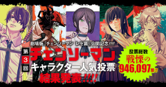 1: 以下、名無しで筋肉速報がお送りします 2025/12/06(土) 15:40:48.81 ID:l+/iLvsF9 12/6(土) 13:55 2025年12月3日、『チェンソーマン』の特設ページにて、劇場版『チェンソーマン レゼ篇』公開記念として、3回目となるキャラクター人気投票の結果が発表されました。過去最高となる94万票超えの票数が集まり、注目度の高さが伺えます。 TOP10を下から見ていくと、「三鷹アサ」「ポチタ」「吉田ヒロフミ」「ビーム」「エンジェル(天使の悪魔)」「パワー」「デンジ」「早川アキ」「マキマ」「レゼ」がランクインしました。 第1位のレゼは、2位のマキマと2倍以上の差をつけ、堂々の1位に輝きました。劇場版『チェンソーマン レゼ篇』では、レゼがマキマに敗北するため、人気投票での「逆転劇」に注目が集まっています。 なお、特設サイトでは1位記念に、藤本タツキ先生描き下ろしの4コママンガが掲載されています。気になる人はサイトをご確認ください。 過去2回の人気投票では、第1回はパワー、第2回は早川アキが1位でしたが、2位のキャラクターはマキマが不動です。第3回でも2位にランクインし、「さすが支配の悪魔」「2位をキープし続けてて流石」という声があがっています。また、「前回と同じ2位だけど票数自体はどんどん右肩上がりになってんだな」と、順位は同じものの、これまでの人気投票との違いを指摘するファンもいました。 また11位から20位まで範囲を伸ばすと、2部のキャラクターの猛追が印象的です。TOP10入りした三鷹アサ、吉田ヒロフミはもちろん、「ナユタ」や「クァンシ」、「ヨル(戦争の悪魔)」、「シーちゃん(死の悪魔)」などが20位以内に食い込み、今後の活躍次第でさらに順位をあげる可能性を秘めています。 劇場版の公開や原作2部の盛り上がりを受け、ますます熱を帯びる『チェンソーマン』。今後の展開とともに、次回以降の人気投票の結果にも注目が集まりそうです。 特設サイト チェンソーマン 1 (ジャンプコミックスDIGITAL)藤本タツキ集英社2019-03-04チェンソーマン 22 (ジャンプコミックスDIGITAL)藤本タツキ集英社2025-09-04…