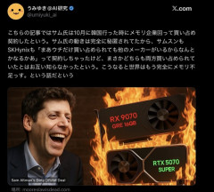 1: 名無し 2025/12/09(火) 18:44:54.57 ID:jvd2fOOO0 サミュエル・H・アルトマン(Samuel Harris Altman〈[ˈɔːltmən] AWLT-mən〉、1985年4月22日 - )は、アメリカ合衆国の起業家兼投資家でプログラマー。OpenAI社の最高経営責任者でYコンビネータの元代表。Tools For Humanity及びワールドコイン財団共同創業者、チェアマン。核融合クリーンエネルギースタートアップのオクロ(英語版)及び、ヘリオン・エナジー(英語版)の会長でもある。 2: 名無し 2025/12/09(火) 18:45:36.81 ID:a7/M8qVm0 だれやねん 3: 名無し 2025/12/09(火) 18:47:02.08 ID:vHAcqqmY0 たまごっちのやつか? 5: 名無し 2025/12/09(火) 18:49:34.02 ID:QWERlaFq0 そこまて金もつんかいな? 今って循環投資で収益上げてるだけやから実態は単なる投資金で設備投資やりまくってるだけやろ? 【動画】女さん(19)のボクシング動画がとにかくエロい!エロい!どエロい!!!!!【画像】村重杏奈さん「お●ぱい出したくてしょうがないです!」【闇深】えっちな温泉女子さん「貸切露天風呂にお邪魔したよ♡」→天才ハッカーたかひろ「モバイルオーダーの欠陥を見つけたぞ...」←お弁当や惣菜を注文しまくって逮捕【悲報】エ●チな選挙ポスター、街中に堂々登場wwww【動画】マッチョ(122kg)と格闘家(56kg)の喧嘩がとんでもないwww【動画】マッチョ(122kg)と格闘家(56kg)の喧嘩がとんでもないwww【警告】国税庁「ごめん、君らがちゃんと納税してくれないとこうなっちゃうけどどうする?」【画像】汗だくセ〇クスするなら、どの人選ぶ?…