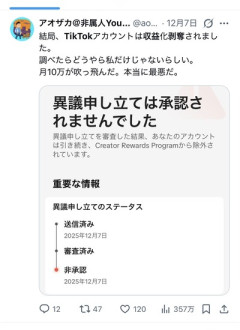 中国、日本人tiktoker収益化剥奪の報復開始www