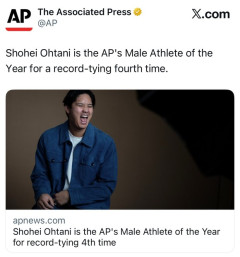 1: 2025/12/09(火) 22:08:34.37 ID:tNEafjwf0 AP通信の全米最優秀アスリート賞を受賞した模様 4: 2025/12/09(火) 22:09:46.36 ID:43RxIAya0 そらそうよ競技の枠を超えたスターが今は大谷だけしかいないやろ…