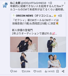 【画像】ゼクシィがCMに17歳女優を起用、炎上wwwww