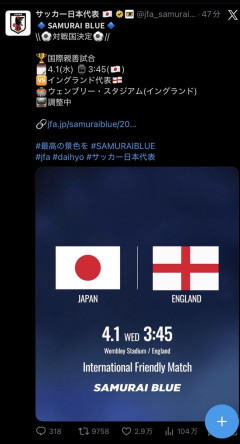 3月の親善試合にイングランド代表が決定! W杯直前、日本代表にとって重要な試合