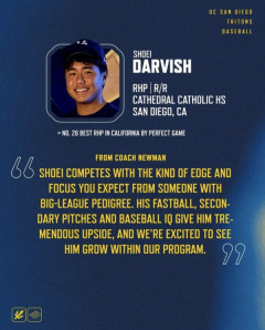 1: それでも動く名無し 2025/12/11(木) 22:02:27.43 ID:PsLTOIeb0パドレスのダルビッシュ有投手(39)の息子で、投手として野球をプレーしているショウエイさん(18)が来年秋、米カリフォルニア大学サンディエゴ校のディヴィジョン1に所属するトリトンズに加入する。同チームの公式サイトが10日までに発表した。現在はサンディエゴのカテドラル・カトリック高校に所属。パドレスのアマ育成チームにも所属する183センチ、84キロの上手投げ右腕で、自身のSNSでは91マイル(146キロ)の速球に加えてツーシームやスイーパーを披露している。 トリトンズのニューマン監督は「メジャーの血筋から来る鋭さと集中力で戦う。速球、変化球、野球IQに優れ、プログラムの中で成長していくのが楽しみだ」とコメントしている。…