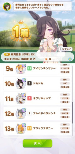 355: 名無しのトレーナー 25/12/11(木) 23:52:55 ID:WP.i2.L13 ハァ…ハァ…17人のゴルシが討死したけど勝ったぞサイゲはガチでこのまま追込放置か?強いとはいえモブの差し追込相手に地固め機先出しても7割16位スタートだぞ 356: 名無しのトレーナー 25/12/11(木) 23:53:28 ID:Ee.zx.L66 >>355タフやのうてか雨降らせた方がいいんじゃ 358: 名無しのトレーナー 25/12/11(木) 23:53:44 ID:yT.g9.L64 有馬のモブは序盤中盤がめっちゃくちゃ強いからな切れ者で大量にスキルあってやっと前のほうに出られる 359: 名無しのトレーナー 25/12/11(木) 23:53:51 ID:or.1g.L41 オグリがクソ事故ってそう 361: 名無しのトレーナー 25/12/11(木) 23:54:12 ID:iy.g9.L48 >>358LOHもこれくらいにすれば脚質問題解決するんでないかな余計きつくなるか…? 362: 名無しのトレーナー 25/12/11(木) 23:54:21 ID:3B.xq.L1 上振れてUA前半くらいなのにUS相手に勝てる気がしない 366: 名無しのトレーナー 25/12/11(木) 23:54:46 ID:yT.g9.L64 とはいえ先行モブがめっちゃ強いんで無我夢中が普通にいい場所で出せるんで差しも勝てますわ 367: 名無しのトレーナー 25/12/11(木) 23:54:56 ID:WP.i2.L13 >>356雨降らせたら金1白3の回復あってもハゲ不発が4割ぐらいあったわマジで切れそうになった京都3000で出るのに有馬は出んのか 370: 名無しのトレーナー 25/12/11(木) 23:55:06 ID:HG.8r.L35 >>362オグリが事故れば勝てるらしいぞ 371: 名無しのトレーナー 25/12/11(木) 23:55:16 ID:nx.fo.L81 >>370 372: 名無しのトレーナー 25/12/11(木) 23:55:30 ID:Vc.xq.L42 >>371姉さん!? 373: 名無しのトレーナー 25/12/11(木) 23:55:33 ID:67.hs.L40 雨降らせてパフェ食って事故を祈るうまくいくと距離Aでも勝てる 374: 名無しのトレーナー 25/12/11(木) 23:55:40 ID:Ee.zx.L66 オグリ事故らせボールとかないか? 375: 名無しのトレーナー 25/12/11(木) 23:56:00 ID:yT.g9.L64 ド直球で草 376: 名無しのトレーナー 25/12/11(木) 23:56:03 ID:HG.8r.L35 >>374ライスボール的な? 379: 名無しのトレーナー 25/12/11(木) 23:56:11 ID:Vc.xq.L42 有馬チャンミ用キャラ作ったら勝てるやろハナホジー 380: 名無しのトレーナー 25/12/11(木) 23:56:13 ID:3B.xq.L1 ひでぇボールだ 459: 名無しのトレーナー 25/12/12(金) 00:10:43 ID:OJ.jf.L57 あ 引用元: 【おんJ】ウマ娘 プリティーダービー部 第11911レース 管理人 先頭とったシュヴァちがそのまま勝ってくれた。ランダム性に賭けるのが一番の必勝法なのは間違ってない気はするw…