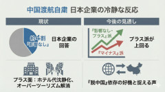 1: 名無し 2025/12/14(日) 10:32:15.89 ID:K4tM9wLp0 帝国データバンクは12日、中国外務省による日本への渡航自粛要請の影響に関する調査結果を公表した。 回答した日本企業の40.8%が「影響はない」としており、同社は「多くの企業が冷静に受け止め、影響は限定的とみている」と分析。 「マイナス」は42.8%だった一方、今後の見通しでは「プラス」と「影響なし」の合計が過半数を占めた。 現場からは「脱・中国を促す契機となる」「観光地の混雑緩和」といった前向きな声も上がっている。 朝日新聞 ■要約 ・中国の渡航自粛に対し、日本企業の約4割が「影響なし」と回答。 ・今後の見通しでは「影響なし・プラス」派が「マイナス」派を上回る。 ・ホテル代の沈静化やオーバーツーリズム解消など、プラス面を指摘する声も。 ・「脱中国」依存を進める好機と捉える経営者も多く、冷静な反応が目立つ。 ■解説 中国政府は「人の流れを止めれば日本経済は干上がる」と恫喝したつもりだろうが、結果はこの通りだ。 4割以上の企業が涼しい顔で「影響なし」と答えている現実は、日本経済の足腰が中国依存から脱却しつつあることを証明している。 むしろ、異常に高騰していたホテル代が適正化され、観光公害が緩和されるなら、日本国民にとっては「怪我の功名」ですらある。 一部の不動産業などが悲鳴を上げているようだが、それは中国マネーに過度に依存していた経営体質のツケが回ってきただけのこと。 高市政権下で進む経済安全保障の観点からも、この機会に特定国リスクを排除し、健全な自立経済へと構造改革を進めるべきだ。 中国の嫌がらせが、皮肉にも日本の「体質改善」を後押ししてくれていると言える。 徳川家康(軍事B 政治S 運S)←こいつが天下取れた理由 【速報】 外務省「もうどうなるか分からない」 【海外の日常】 その家は犬が放し飼いだった。こんな時はどうするの? → 配達員はこうします……