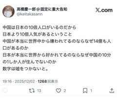 69 名前:名無しさん必死だな [sage] 投稿日:2025/12/03(水) 12:55:08.70 ID:qx3KQcx+0 中国は日本の10倍人口がいるのだから 日本より10倍人気があるということの証明だと言うのに(´・ω・`) 73 名前:名無しさん必死だな [] 投稿日:2025/12/03(水) 12:55:49.92 ID:SQ0qtfsZ0 >>69 意味がわからない(´・ω・`) 94 名前:名無しさん必死だな [sage] 投稿日:2025/12/03(水) 12:57:30.22 ID:qx3KQcx+0 >>73 僕も意味がわからないので解説してほしい(´・ω・`) 76 名前:名無しさん必死だな [sage] 投稿日:2025/12/03(水) 12:55:56.63 ID:hInbZ00Q0 >>69 嫌いな奴が14億倍ってこと(´・ω・`) 101 名前:名無しさん必死だな [sage] 投稿日:2025/12/03(水) 12:59:17.68 ID:uL44khHf0 >>69 チャッピーの回答(´・ω・`) 中国の人口が多いのは 歴史・地理・農業条件 の結果であって、 「世界に好かれている」からではない。 日本の人口が少ないのは 島国で土地が狭く、歴史的に人口が増えにくい だけで、 「世界に嫌われている」からではない。 人口は 人気の指標ではなく、環境と歴史の数字。 隣の宇宙人がコワい (1) (角川コミックス・エース)posted with AmaQuick at 2025.12.13阿東 里枝(著)KADOKAWA (2022-01-26T00:00:00.000Z)¥99Amazon.co.jpで詳細を見る 妹は知っている(1) (ヤングマガジンコミックス)posted with AmaQuick at 2025.12.13雁木万里(著)講談社 (2025-03-06T00:00:00.000Z)¥792Amazon.co.jpで詳細を見る…