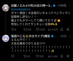 引用元: 648: Vtuberまとめ2025/12/15(月) 15:48:38.36 ぺこーらちゃんと返信しました 671: Vtuberまとめ2025/12/15(月) 15:49:14.52 >>648 遅くて草 678: Vtuberまとめ2025/12/15(月) 15:49:22.84 >>648 おっそ 682: Vtuberまとめ2025/12/15(月) 15:49:26.81 >>648 なんでこんな謝ってんの? 684: Vtuberまとめ2025/12/15(月) 15:49:30.28 >>648 ぺこら確実に掲示板見てるな こいつネット環境なくなったら死んじゃううさぎやんけ🤪 692: Vtuberまとめ2025/12/15(月) 15:50:01.65 >>682 そら運営派閥の王だからな… 721: Vtuberまとめ2025/12/15(月) 15:51:00.02 >>648 ええんやでってなに? 勝手にやめたのに 23時以降でもやればいいじゃん 勝手に数字気にしてやめただけなのになんで謝るのが当たり前みたいになってんの?…