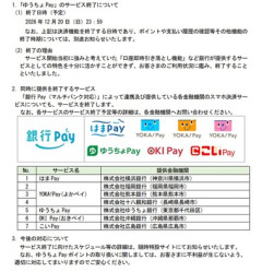 34: 名無し 2025/12/15(月) 17:19:37.27 ID:511DYMbf0 ゆうちょPay、1年後に終了 連携の横浜・福岡・沖縄・広島銀も 2025年12月15日 スマホ決済サービス「ゆうちょPay」の終了のお知らせ ~2026年12月20日をもちましてサービスを終了いたします~…