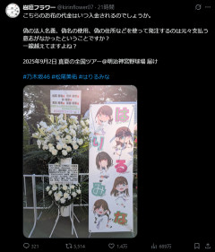 【画像】アイドルオタクさん、祝い花を架空法人名義で注文し代金を支払わず失踪