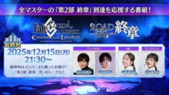 【カルデア広報局より】このあと21:30から「Road to 終章」第11回(最終回)を生配信!★本日は「第2部 終章_序」特集! 「第2部 終章」開幕に向けて、マスターのみなさまの意気込みも紹介!YouTube Liv […]…