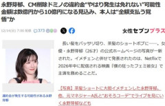 1: 名無し 2025/12/14(日) 07:19:44.05 ID:2JL8Wvi99 永野芽郁、CM削除ドミノの違約金“やはり発生は免れない”可能性 金額は数億円から10億円になる見込み、本人は“全額支払う覚悟”か…