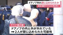 1:名無し :2025/12/16(火) 16:12:04.086ID:YfPrbOwJw現場に燃えたタオル…扉のドアノブ外れ閉じ込め?個室サウナ火災で男女死亡 非常ボタン押された形跡も作動不明 東京・赤坂|FNNプライムオンライン(中略)現場に燃えたタオル…非常用ボタン押されたかサウナ室内には非常用ボタンがあり、押されたような形跡があるというが、作動したかどうかは分かっていない。全文はこちら※関連記事【速報】赤坂高級サウナ火事2人死亡、サウナ室のドアノブ外れ死か 2:名無し :2025/12/16(火) 16:12:27.743ID:ScMJVvB04 意味のないボタンだよ 4:名無し :2025/12/16(火) 16:12:58.022ID:xT6RJojME 事件かな 5:名無し :2025/12/16(火) 16:13:27.407ID:Ix/1Zkjn5 男女でサウナって凄いな 18:名無し :2025/12/16(火) 16:15:55.313ID:FQHrMo8bo >>5 同性だったから夫婦やと思うで 215:名無し :2025/12/16(火) 16:36:56.119ID:p.aYm22mf >>18 夫婦か 一気に悲しみが増してきたな 223:名無し :2025/12/16(火) 16:38:00.963ID:QlphAJMWo >>18 小さい子どもおったら大変やな…