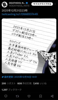 【速報】人気Vtuberさん、デスドルノートに暴露予告されるwwwwww
