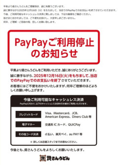 「資さんうどん」、PayPay支払いを終了