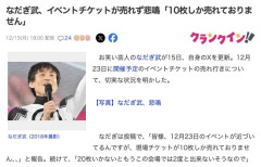 1 : お笑い芸人のなだぎ武が15日、自身のXを更新。12月23日に開催予定のイベントチケットの売れ行きについて、切実な状況を明かした。 なだぎは投稿で、「皆様、12月23日のイベントが近づいてるんですが、現場チケットが10枚しか売れておりません、、」と報告。続けて、「20枚いかないともうこの会場では2度と出来ないそうなので」と危機的な状況を伝え、「一つ皆様、23日の夜空いてるよと言う方、遊びに来て頂けたら幸いです」と来場を呼びかけた。 イベントは12月23日に開催される「なだぎ武Xmas1曲ディナーショー2025」。会場のキャパシティは60名で、前売券は2500円となっている。 3 : こういうの何商法っていうの? 4 : 開会式マン…