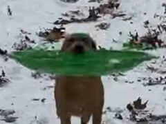 うちの子イヌは手がかからない。雪が少し降り積もった → 自分でこうやって遊びます…
