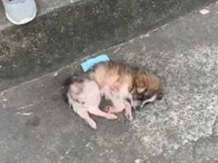 衰弱した子イヌが路上に倒れていた。誰にも見向きもされない → 連絡を受けた保護施設のスタッフが駆けつけた…